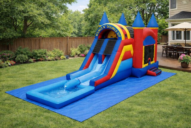 Our Castle Dual Lane Bounce & Water Slide will bring tons of fun to your next birthday party or event. This massive combo which is the largest of its kind in the whole state of Virginia , not only has a huge bounce house but has 2 slides for double the fun. No need to worry about the kids slipping in the bounce house because this combo features a non-slip grip! The dual lane slide feature will keep the kids from waiting to have a turn keeping the fun going. The unisex design is perfect for making the easy decision for any ocasion. Birthdays, school festivals, company picnics, church events, fairs, and any other ocasion to just have FUN!