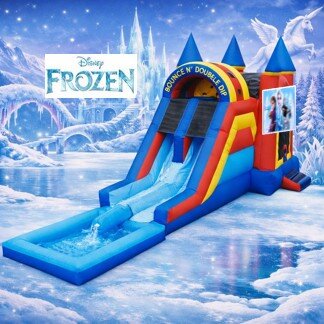 Our Disney Frozen Bounce House & Water Slide Combo is always a favorite amongst little girls ever since the popular movie Disney Frozen came out. They can have a blast with Princess Elsa, Princess Anna, Olaf, Kristoff, Sven, and you can’t leave out the adorable snowman Olaf! If you are planning a Disney Frozen themed birthday party for your little girl, it just won’t be complete without Jump N Fun’s Disney Frozen Bounce House & Water Slide Combo. Your daughter will feel like a real princess in this 18ft. tall, 40 ft. in length, and 15ft. in width giant Disney Frozen castle. Why settle for a boring party when you can have a party full of laughter, fun, jumping, sliding, and splashing? Make your little girl’s dream come true by renting this bounce house and water slide combo for her birthday party. You don’t have to wait until a birthday party to book this gorgeous unit, it’s perfect for a company picnic, school festival, family reunion, church fair, or summer camp.