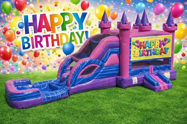 Happy Birthday Bounce House & Dual Waterslide